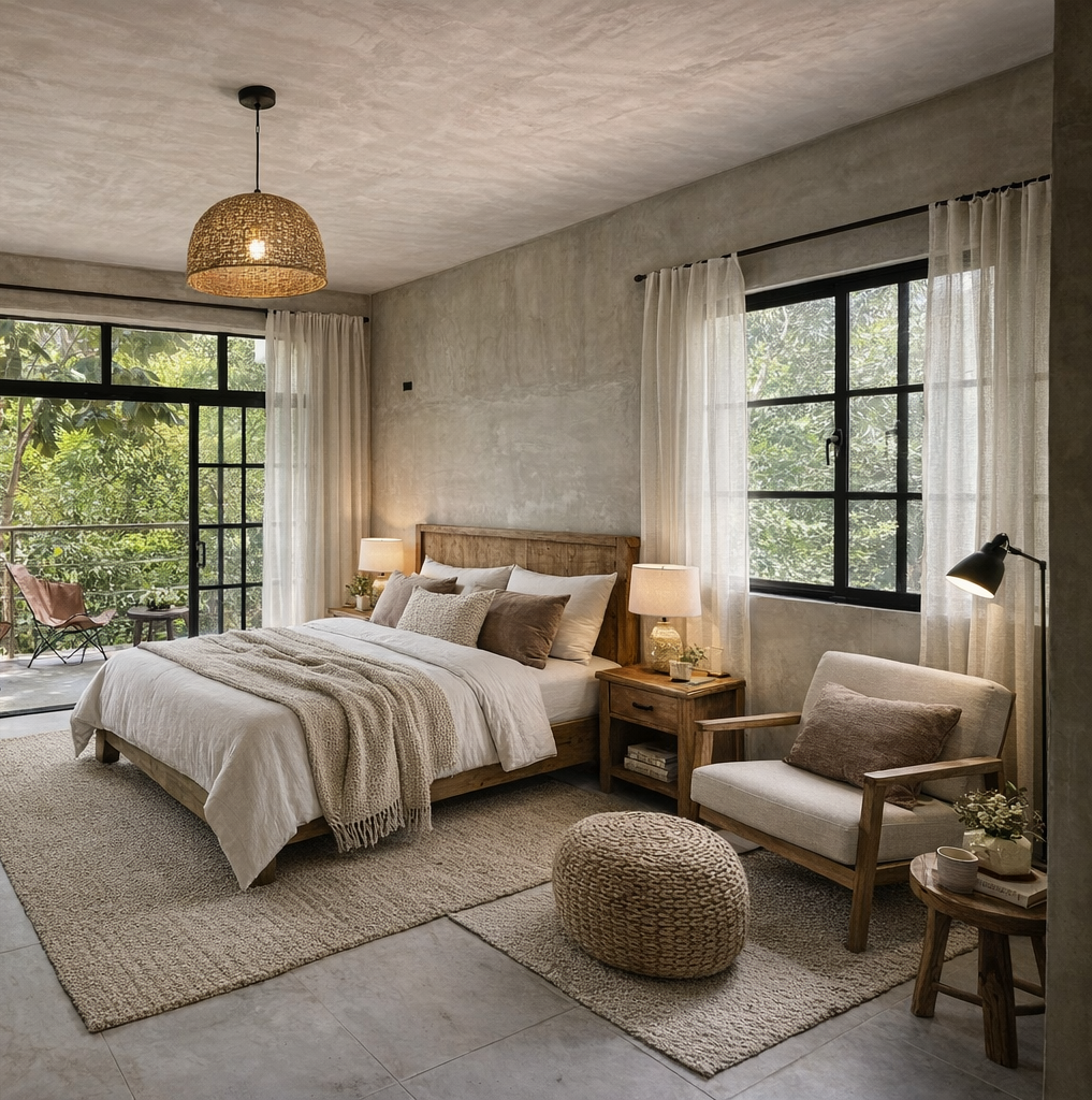 Encantados quedamos con la ambientación de este espacio que logramos con la mezcla lo rústico con lo contemporaneo para un Airbnb vacacional alejado del caos y cercano a la naturaleza